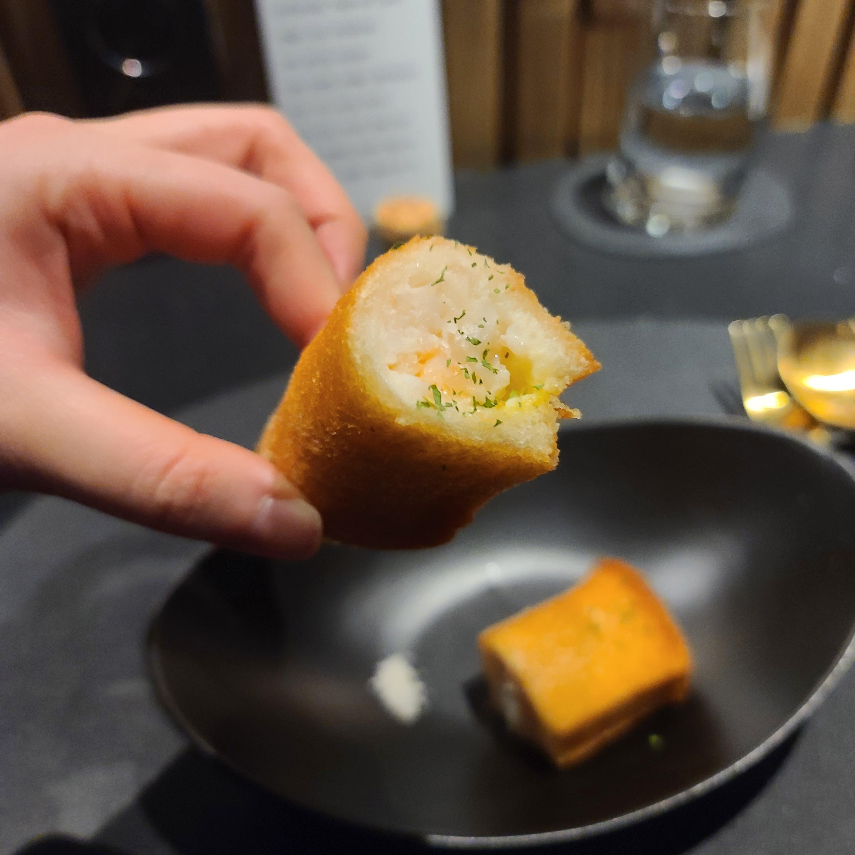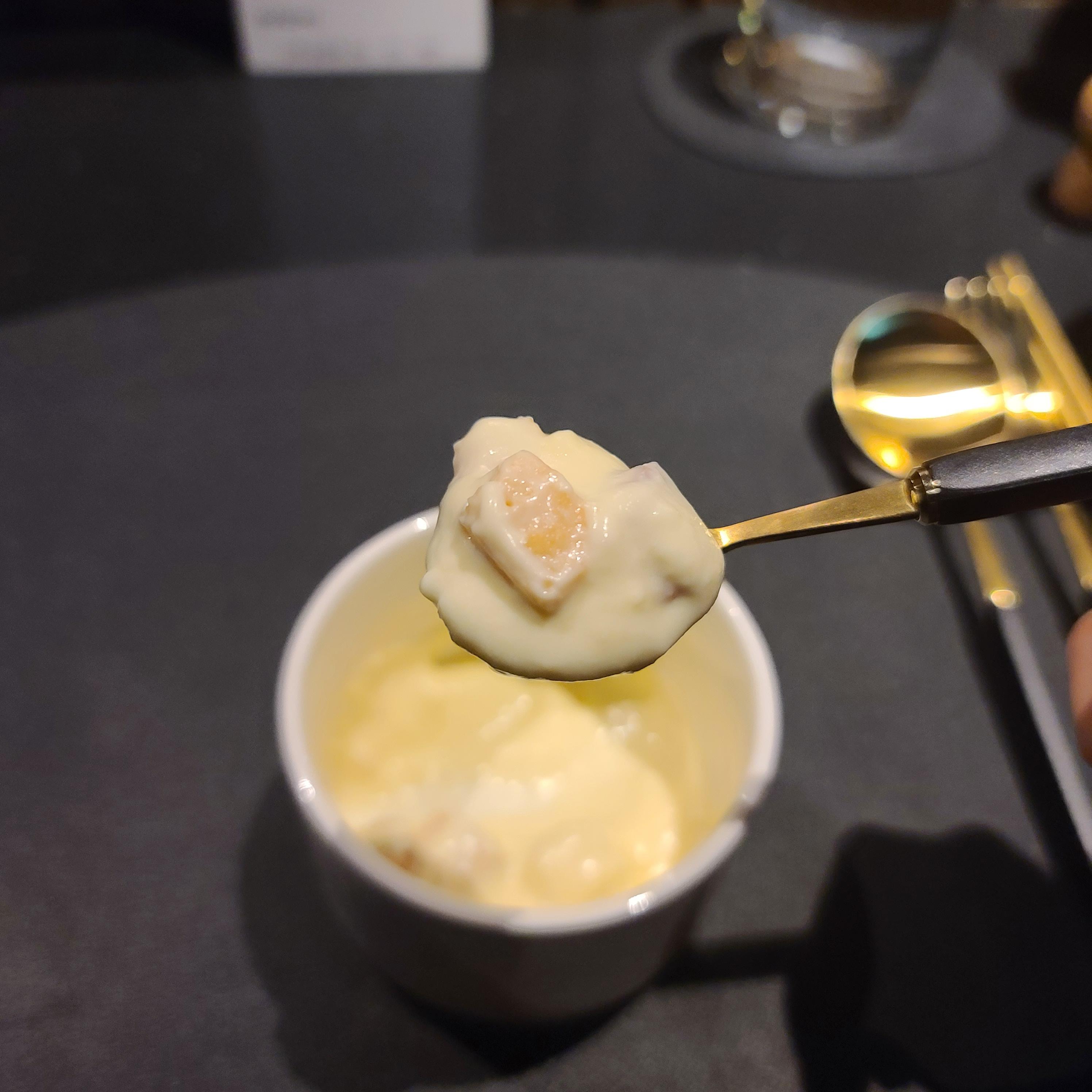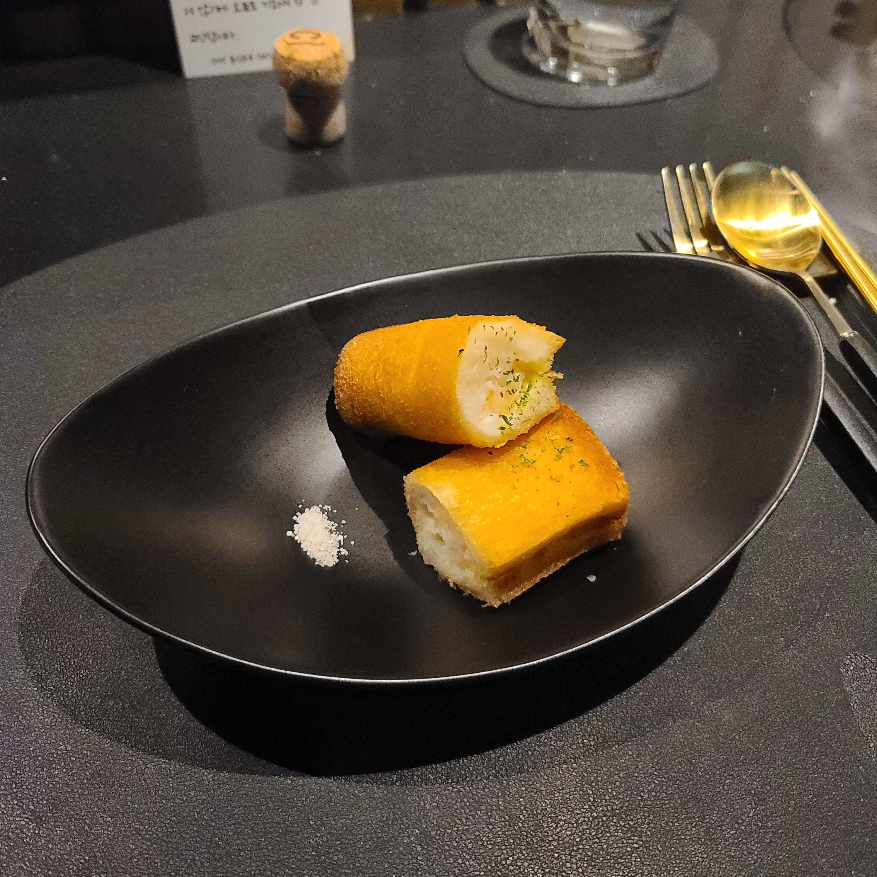 아쉽게도 오마카세는 점점 끝으로 달려가고 있었고 뒤로 갈수록 내 취향을 저격하는 음식들이 나왔다. 맨보샤 느낌이 났던 다진 새우가 들어간 식빵 튀김. 뭐, 거의 맨보샤라고 해도 무방했는데 샌드위치처럼 겹쳐진 게 아닌 살짝 변형을 해서 만드셨다고 했다. 개인적으로 돌돌 말린 게 먹기가 편했다. 분명 겉은 바삭한데 속은 어쩜 그렇게 부드러울까. 적당히 간이 되어 있어 별다른 소스 없이도 충분히 맛있었던 음식이다.